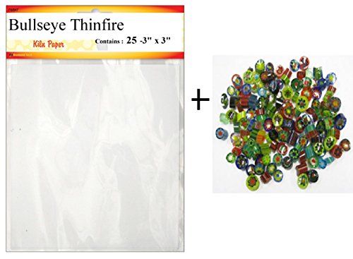 25 Sheets (3" x 3")of Bullseye Thinfire Kiln Shelf Paper, one time use, and 1/2 Oz. Fuseworks Milliefiori COE 90, is These items work great in all kilns including Fuseworks microwave kilns.Feature