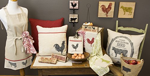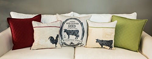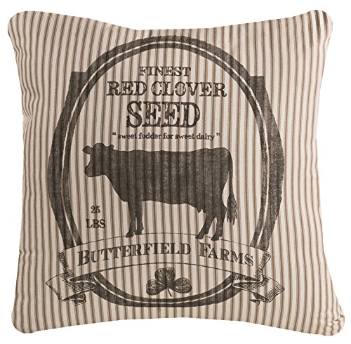 Heritage Lace farmhouse 22" x 22" butterfield farms pillow cover. Add a little rustic charm to your farmhouse decor with our butterfield pillow. Inspired by vintage grain sacks used to store seeds, this pillow will add comfort to any room. The screen-printed butterfield farms logo declares "sweet fodder for sweet dairy" and appears against a ticking stripe cover.