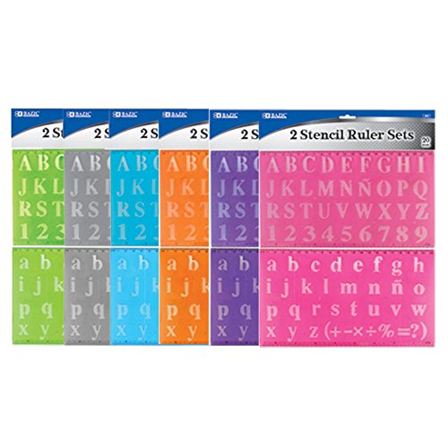 3 Pk, BAZIC 20mm Size Lettering Stencil Ruler Set, Assortment (Total of 6)
