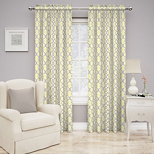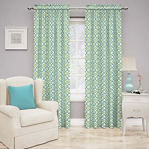 Refresh any room in your home with classically elegant window treatments by Waverly. This stylish panel features a casual and contemporary geometric print. Each curtain panel measures 52wide x 84Long. Hang two panels on a standard or decorative curtain rod for desired look. 2 inch rod pocket is recommended with a 1 inch rod for maximum movement. 1.5 inch header adds decorative style. Curtain rod sold separately. 67percent poly/33percent cotton, unlined. Machine wash cold, gentle cycle. Tumble dry low. Imported.Feature