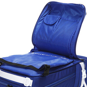 02 메인공간을 2중으로 분리하여 다양한 소지품 수납가능하며 앞쪽 메인공간 탈부착 가능한 신발주머니 내장형 입니다.