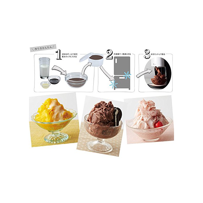 부속품:빙수 어레인지 레시피(요리처리법)(요리 연구가 사카구치 토모코 선생님 감수)고, 전용 제빙 컵2개