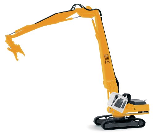 Liebherr Raupenbagger Litronic R954 longfrontAuf der Spielwarenmesse 2005 wurde er schon mal kurz angekündigt, nun ist er da, der '954 Litronic Abbruch. von Liebherr. Stolze 302 PS treiben das Arbeitsgerät mit einem etwa 27 Meter langem Abbrucharm mit Zange am Ende an. Das Einsatzgewicht beträgt bis zu 70 Tonnen. Wie auch beim Vorbild wird die Kabine bis zu 30 Grad kippbar sein, damit der Baggerführer eine bessere Sicht auf den Einsatzort hat.