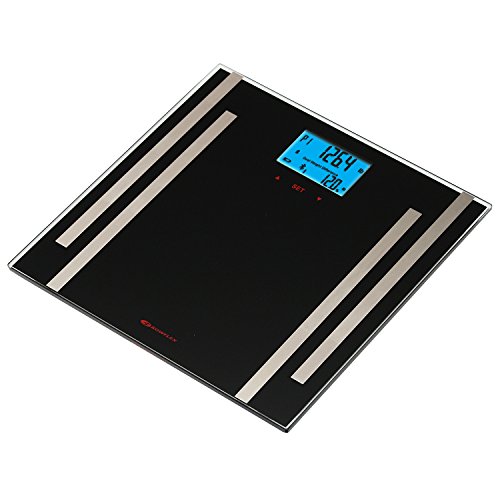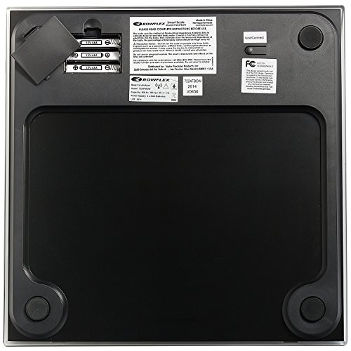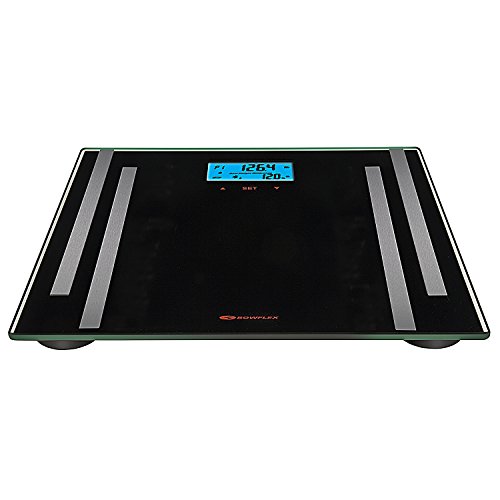 Studio : Bowflex Publisher : Bowflex Binding : Health and Beauty Product Description Be sure of safe storage temperatures with the Taylor Precision Products Bowflex Smart Scale. Interface with this scale with Bluetooth-enabled tablets and smartphones on the free SmarTrack app and other popular fitness apps. Track weight and estimate body fat, body water, and muscle mass with 4 user memory options in normal and athlete modes, with cloud-based memory storage. Built to accommodate up to approximately 400 pounds (180 kilograms), this 11.8-inch square black glass platform features sleek, modern styling with stainless steel accents. Read weight and body fat/body water percentages at a glance with the 2-inch by 3-inch blue backlit LCD display. Never worry about excessive battery drain on the 3 included AAA batteries with instant on, auto off, and a low battery indicator. 0