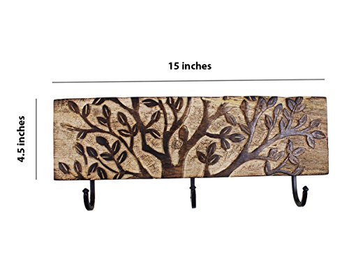 -. Feature : Dimensions: Length - 15 inches x Height - 4.5 inches / Hand carved out of durable Mango wood which is known for its rich, natural luster and natural grains / Adorned with a tree of life pattern, the holder comes with 3 hooks / Used to hang coats, keys and hats, this wall hook is a beautiful addition to your home décor / Dated back to 400 years ago in the Mughal period, artisans of Saharanpur started wooden carving work and now 1,00,000 artisans are involved in this industry making world's finest handicrafts