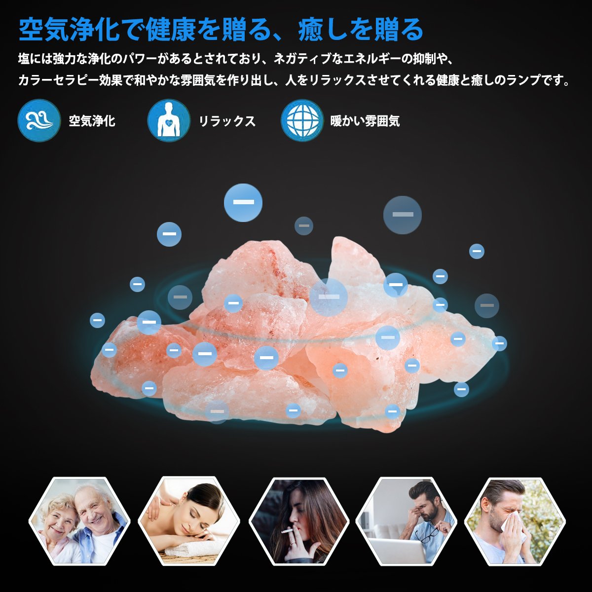 A mysterious orange wavelength similar to the sunrise or evening sun releasing rock salt is said to have a function to heal the respiratory system, and it also encourages a high healing that makes you feel calm even just watching.