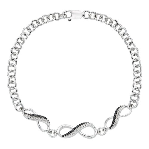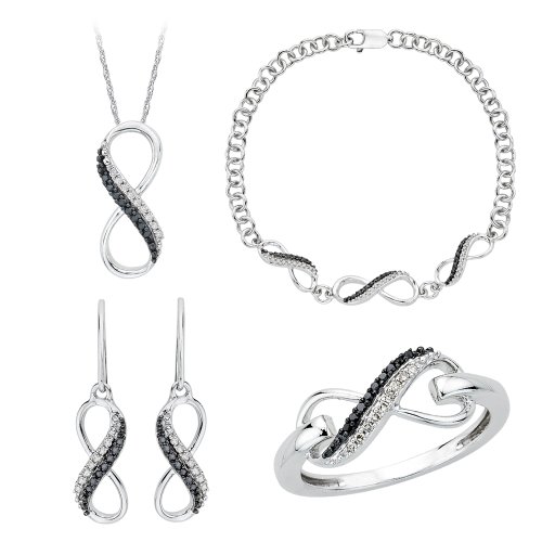 -. Binding : Jewelry -. Brand : Katarina -. Department : womens -. Feature : This Pendant comes with 18 inch Box Chain with SP.R.Ing Ring Clasps / These Earrings have Fish Hook Back Finding. This Bracelet is 7 inch Long with Lobster Claw Clasps / The same design is available in White Gold (90000171) / Free 30 Days Return Policy / We are Compliant to Kimberly Process of Conflict Diamonds -. Label : Katarina -. Manufacturer : Katarina -. Model : 90000184 -. MPN : 90000184 -. PartNumber : 90000184 -. ProductGroup : Jewelry -. ProductTypeName : FASHIONOTHER -. Publisher : Katarina -. Studio : Katarina -. Title : Infinity Black and White Diamond Jewelry Set in Sterling Silver (3/8 cttw)