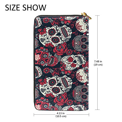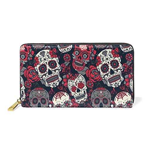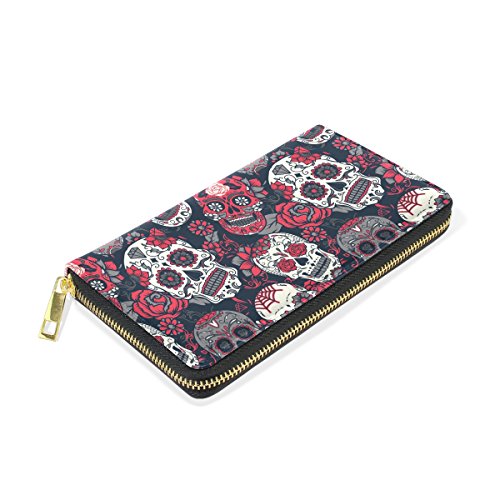 -. Title : Real Leather Clutch Purse Zip Around Sugar Skull Passport Long Wallet Handbag