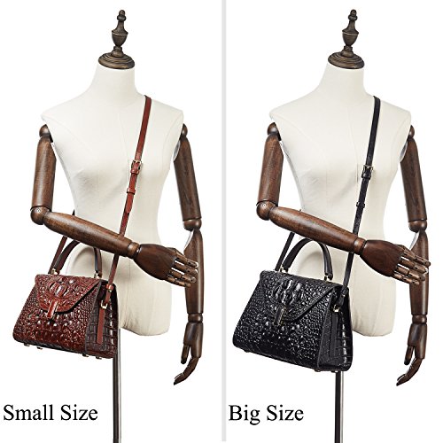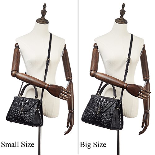 -. Feature : 100% leather : Genuine Cow Leather; Lining fabric; / Buckle Closure, Gold-tone Hardware; / Big Size: L10" x W5.5" x H7.5" , Double handles with 4" drop,45" adjustable & removable strap ;Weight:0.85kg(1.9lbs) / Small Size: L8.5" x W5" x H7" , with 45" adjustable & removable strap ;Weight:0.65kg (1.4lbs) / Interior features a small zip pocket and a slip pocket;