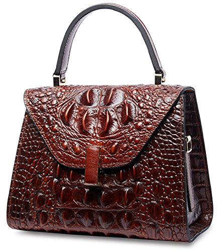 -. Title : Pifuren Embossed Crocodile Leather Tote Satchel Top Handle Bag