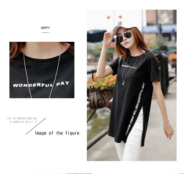 New:side split top female t shirt