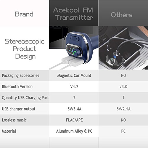 USB Flash Player-Insert a USB flash driver which contains MP3 files into the "RIGHT" USB port, then it will transmit and play the MP3 files automatically (Up to 32GB); Multi-function Button Control: Play/Pause, Previous/Next song, Volume up/down; answer/reject calls, redial call.Acekool bluetooth FM transmitter provides 12-Month Warranty,if you meet any problem during use, please feel free to contact us. We are willing to provide the best customers servie for you.
