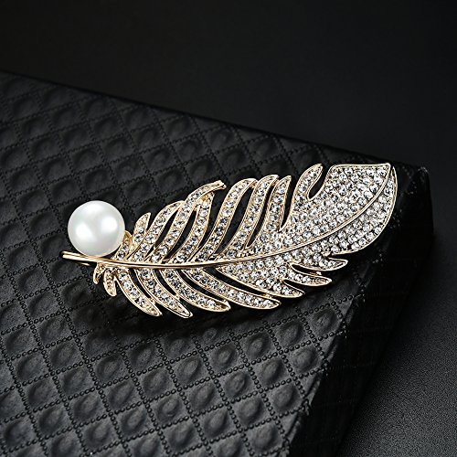 (LUREME)/Accessories/Belts Buckles/DIRECT FROM USA/Lureme Gold Tone Pave Cubic Zirconia Metal Feather Brooch Pin Jewelry Gift (br000099)
