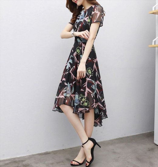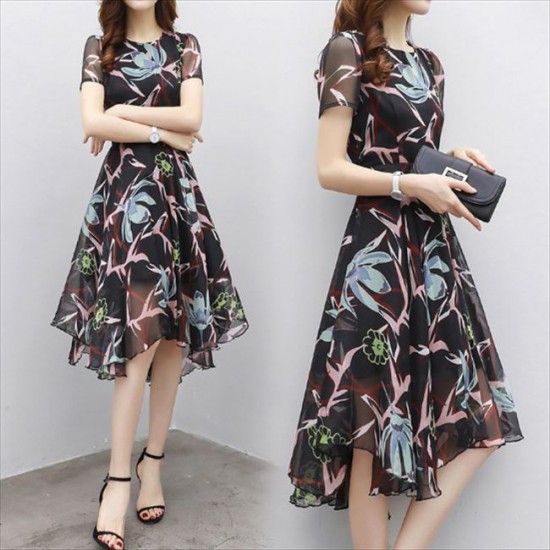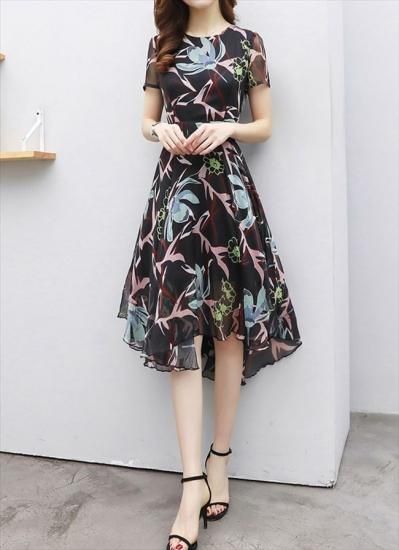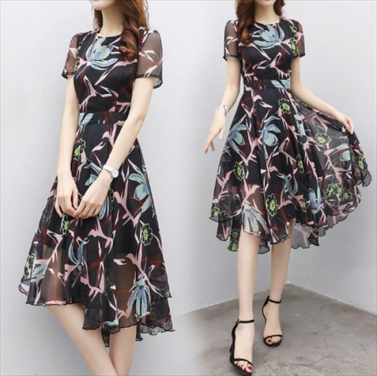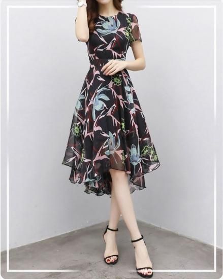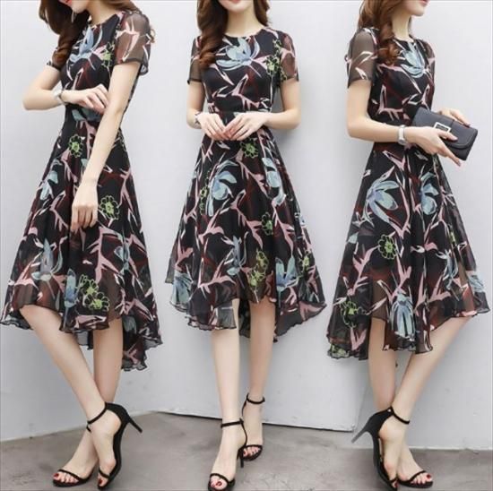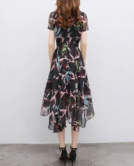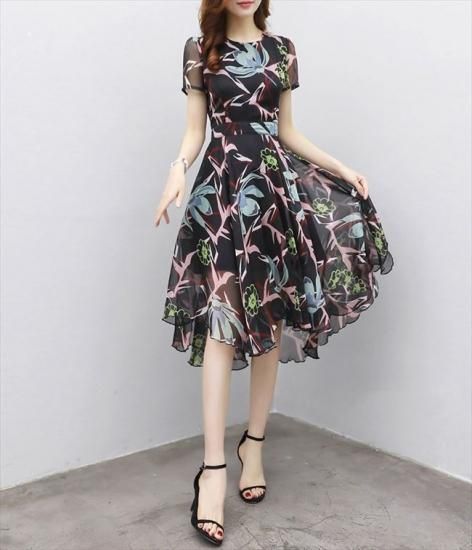 パーティードレス ミモレ丈 ワンピース 透け感 シースルー 花柄 大柄 ブラック 大人 上品 お呼ばれ drgz2723