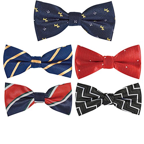 -. Feature : OUMUS Boys ' neck bow ties are classic and thoroughly shows your gentle manner and spirit / Material: 100% Polyester / Size:3.94'' x 1.97'' / 5 packs for you;highly recommend for various occasions matching with your suit / Welcome to OUMUS.Filles freely if you got any problems!We are ready for you