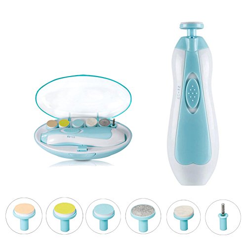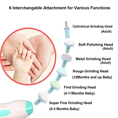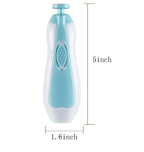 Feature Great for all ages. One-Button Activation Soft LED Front Light Whisper Quiet Motor Compact, Lightweight Design Safe on Baby's Finger and Toe Nails Multiple Speeds and Rotation Patterns 6 Grinding Heads For Baby Use For Adult Use Battery Operated (Two AA Batteries)