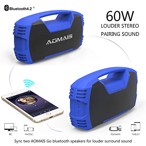 AOMAIS Go Makes the Party: Clear, rich sound that fills the room indoors and performs outdoors. Easily connect any device with a playlist to have continuous sound for any occasion. Tablets, cellphones sync in a snap with Bluetooth 4.2. Works great with iPhones, iPad, Samsung, HTC. Wired connection with PC, TV and other non-Bluetooth devices with 3.5mm audio jack. Use AOMAIS Go for hands-free calling. You can even do Karaoke with the unique 3.5mm external microphone to have a backyard party