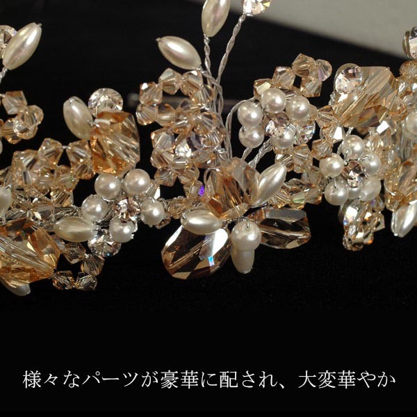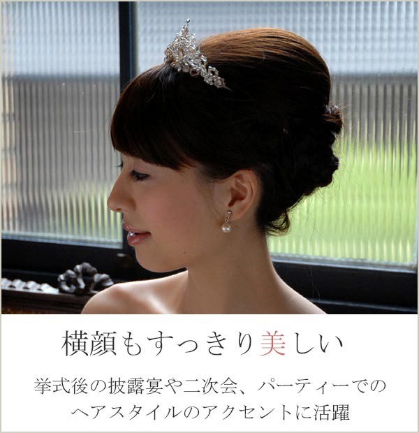 ウェディングベールとのコーディネートはもちろん、挙式後の披露宴や二次会、パーティーでのヘッドドレスとしても活躍してくれます。