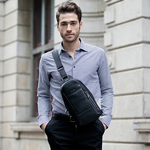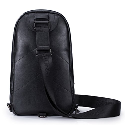 The backside features another exterior zipper pocket. The sling is adjustable.