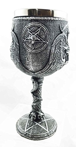 Product Description Baphomet (/?bæf?m?t/; from medieval Latin Baphometh, baffometi, Occitan Bafometz) is a term originally used to describe an idol or other deity which the Knights Templar were accused of worshiping, and subsequently incorporated into disparate occult and mystical traditions. It appeared as a term for a pagan idol in trial transcripts of the Inquisition of the Knights Templar in the early 14th century.[1] The name first came into popular English usage in the 19th century, with debate and speculation on the reasons for the suppression of the Templars.[2] Since 1856, the name Baphomet has been associated with a "Sabbatic Goat" image drawn by Eliphas Levi,[3] which contains binary elements representing the "sum total of the universe" (e.g. male and female, good and evil, etc.).[4] However, Baphomet has been connected with Satanism as well, primarily due to the adoption of it as a symbol by the Church of Satan. 0