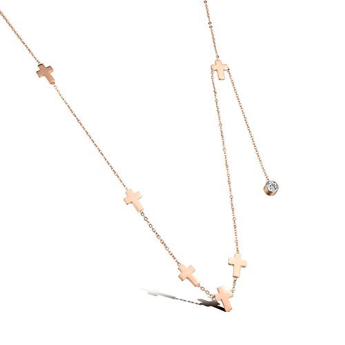 -. Title : Mintik Jewelry Stainless Steel Women's Ladies Rose Gold Cross Pendant Link Necklace