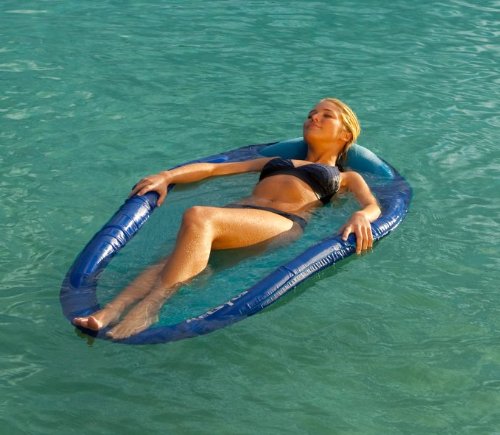 Amazon.com Lay back and relax with the Kelsyus Floating Hammock. The mesh bed of this inflatable hammock envelops your body for total comfort. The inflatable perimeter suspends you in the water, while the mesh inner oval allows your weight to descend into the water, just enough to keep you cool. The integrated half-moon pillow gently cradles your neck and head for hours of water relaxation.