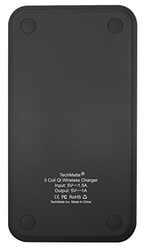 Wireless Charger, TechMatte 3 Coil Qi Wireless Charging Pad for Samsung Galaxy S8, S8 Plus, S7, S6, S6 Edge, LG G6 Note 5, Nexus 6, Nexus 5, (WITH 1.5A AC Wall Charger)