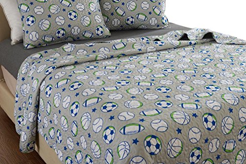 (Web Linens Inc)/Bedding Bath/Bedding/DIRECT FROM USA/2pc?Grey Sports?Quilt Set - design # 1031 - Twin/ Twin XL - Cherry Hill Collection