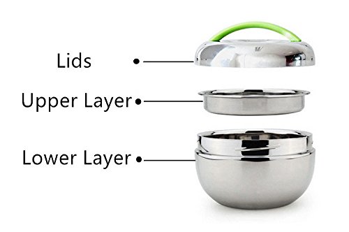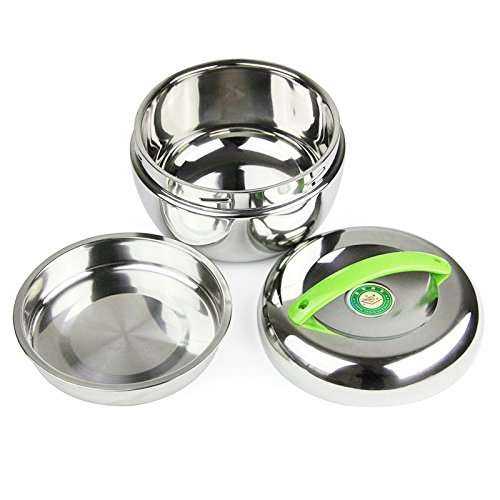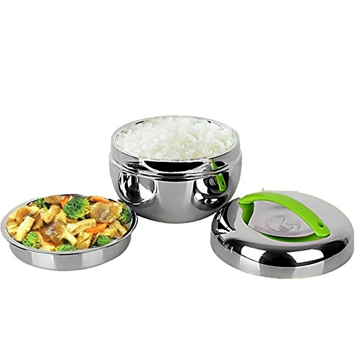 STAINLESS STEEL DOUBLE INSULATED BENTO BOX FOOD CONTAINER STACKING LUNCH BOX WITH HANDLE