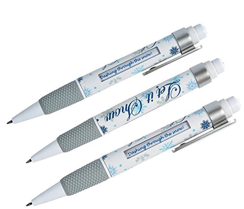Studio : Zugarland Publisher : Zugarland Binding : Toy Product Description Snowflake Message Pens. With every click you'll get one of six winter messages. Give these festive finds away as stocking stuffers, during classroom holiday parties or as office Christmas party gifts. Messages in each pen include: "It's snow time!", "Dreaming of a white winter!", "Dashing through the snow!", "READY, SET, SNOW!", "Let it snow!" and "There's snow place like home!" Black ink. Plastic. 5 1/2" 0