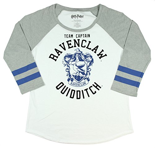 Studio : Hot Topic Publisher : Hot Topic Binding : Apparel Product Description Lead your team to victory in this white grey raglan design top from Harry Potter featuring a Ravenclaw Quidditch Team Captain athletic design with blue striped raglan sleeves. 0