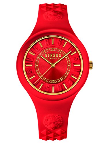 -. Binding : Watch -. Brand : Versus by -. Department : womens -. EAN : 7630030512216 -. Feature : Citizen 2035 quartz movement / Red silicone strap with versus lion logo on both sides / Quartz Movement / Case Diameter: 39mm / Water resistant to 30m (100ft): in general, withstands splashes or brief immersion in water, but not suitable for swimming or bathing -. Label : First SBF Holding Inc. -. Manufacturer : First SBF Holding Inc. -. Model : SOQ100016 -. MPN : SOQ100016 -. PackageQuantity : 1 -. PartNumber : SOQ100016 -. ProductGroup : Watch -. ProductTypeName : WATCH -. Publisher : First SBF Holding Inc. -. Studio : First SBF Holding Inc. -. Title : Versus by Women's 'FIRE ISLAND' Quartz Rubber and Silicone Casual Watch, Color:Red (Model: SOQ100016)