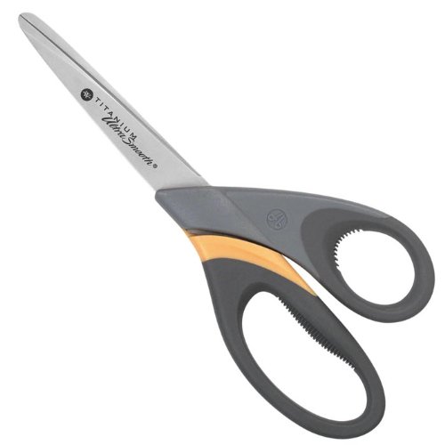 The high-performance titanium provides three times the strength of stainless steel. Resists the stickiness of tape and glue for an ultra smooth cut. The Soft RibGrip allows for precision cutting. For right- or left-handed use. Global Product Type: Scissors, Scissor Type: Scissors, Material(s): Titanium, Handle Type: Straight.Feature
