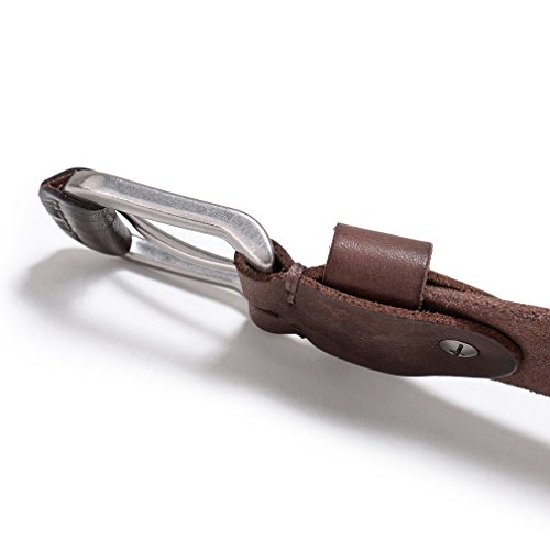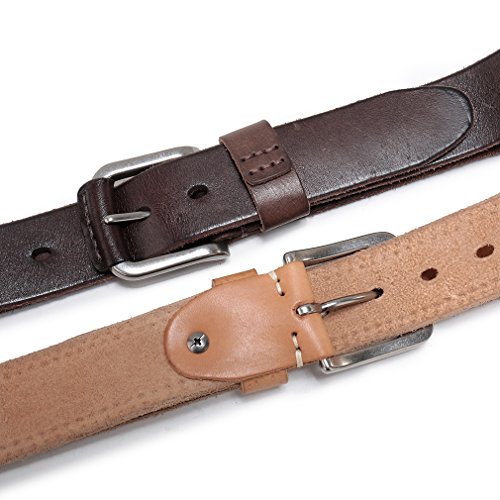 Durable- The antique belt is soft, rich and pliable to feel. It will not stretch or deform when you wear for years. It is 1 1/2" wide which fits jean loops nicely. It is sturdy, durable, rugged and vintage.