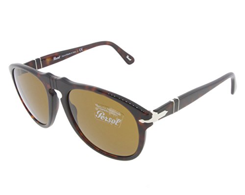 Persol Unisex 0649 Plastic Sunglasses : Tortoise plastic frame, Brown tempered glass lenses, oval shaped. Product comes with an original Persol carrying case, cleaning cloth and manufacturer's booklet.