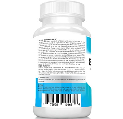 -. Feature : TIRED OF FISH BURPS? Have you experienced the room clearing effects of fish breath? Rejoice because our fish oil is purity certified, stabilized & goes down smooth in our enteric coated soft-gels which prevent those nasty burps. / FISH OIL IS ESSENTIAL, BUT IT'S NOT ENOUGH - Yes fish oil supplementation is essential to get those good fatty acids, but fish oil alone will leaver your body wanting more to achieve peak inflammation & immune response / BLACK CUMIN SEED OIL - It's not as popular as some other nutrients out there, but do some research and you will discover this to be an inflammation and immune support superpower. / VERIFIABLE EXPERTISE - Dr. Olivia Joseph is a clinical nutritionist with a Bachelor's degree in Human Biology. She also holds a Doctor of Chiropractic Degree and is board certified in both acupuncture and Chinese medicine. / SATISFACTION GUARANTEE - Feel a difference or your money back!