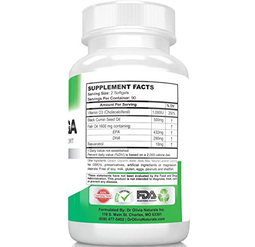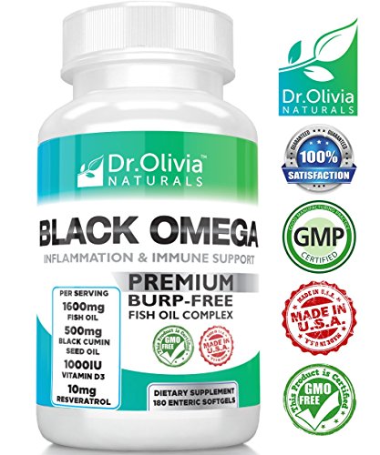 -. Title : Dr Olivia's Burpless Fish Oil for Cardiovascular, Inflammation & Immune Support w/ Black Cumin, Vitamin D3 & Resveratrol Superboost [180 Enteric Coated Burp-Free Softgels]