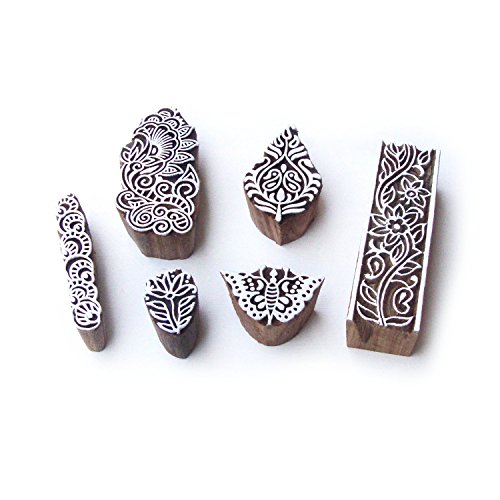 -. Title : Butterfly and Floral Jaipuri Motif Wood Block Stamps (Set of 6)