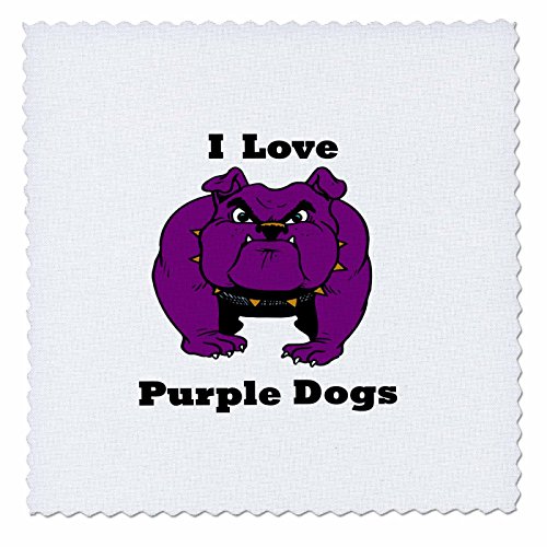 3dRose Print of I Love Purple Dogs with Red Violet Bulldog - Quilt Square, 25 by 25-Inch (qs_210567_10)