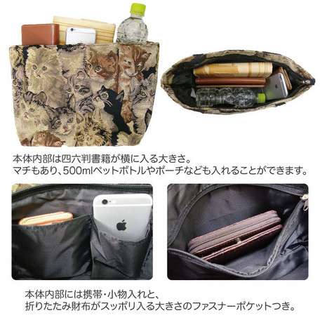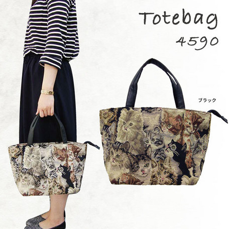 ゴブラン調のねこ総柄がかわいいトートバッグです。
