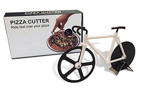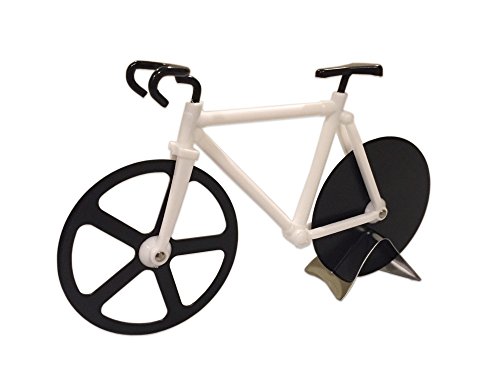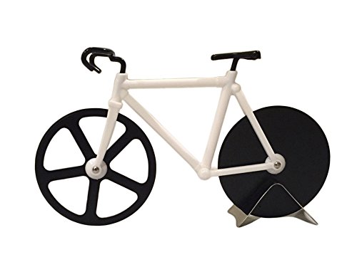 Cut your homemade plain or pepperoni pizza in style with the pink bicycle pizza cutter from Mainroom Studios! This very realistic bike shaped pizza cutter is great for housewarming gifts, kids birthday parties, or even just making pizza in your own home. But keep in mind, it can be used to cut many other items too such as sandwiches, cookie dough, vegetables, spices, and brownies! If you don't use it to cut, it can be used as a great kitchen decoration/conversation starter! The design is sleek, minimal, trendy, and realistic. The bicycle pizza cutter comes with a metal stand included. Even though this pizza cutter is a novelty kitchen tool, it is made with black stainless steel wheels to ensure the highest possible quality. Keep out of reach of children.