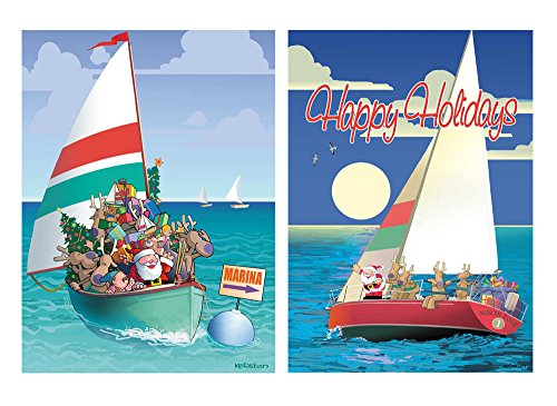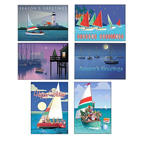 Sail Boat Christmas Card Variety Pack - 24 Cards & Envelopes