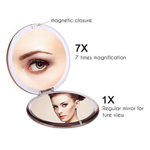 - Dual side makeup mirrors: 7 times magnification & regular mirror, makeup on the go