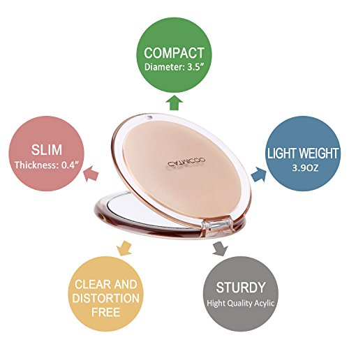 - Sturdy Compact travel mirror: 3.5” in diameter, 0.4” in thickness, easy to fit in makeup case and purse