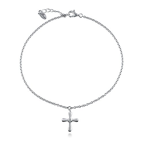 Inspirational elegance you can wear everyday with this cross charm anklet. A truly charming reminder of what really matter most. Made of rhodium plated fine 925 sterling silver. Anklet measures 9 inch with 1 inch extension in length, 1mm in width. Lobster claw clasp. Imported.
