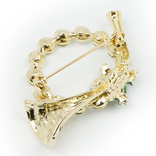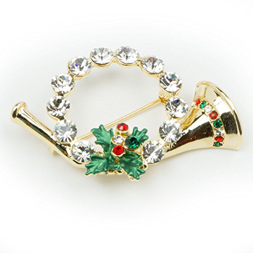 AKIANNA GOLD-TONE SWAROVSKI ELEMENT CRYSTALS CHRISTMAS HORN WREATH BROOCH