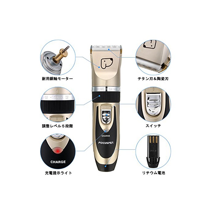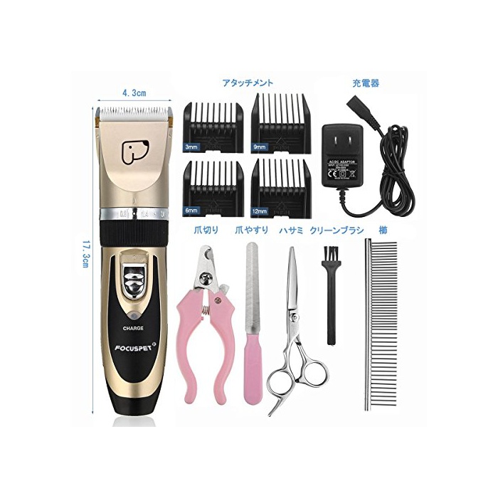 원본상품명:Focuspet ペット バリカン 犬 猫 トリミングバリカン 充電式 低?音 低振動 電動バリカン 家庭用 業務用 バリカン 調整可能 全身カット ペット美容 爪切り 爪やすり 櫛 ハサミ付き ゴ?