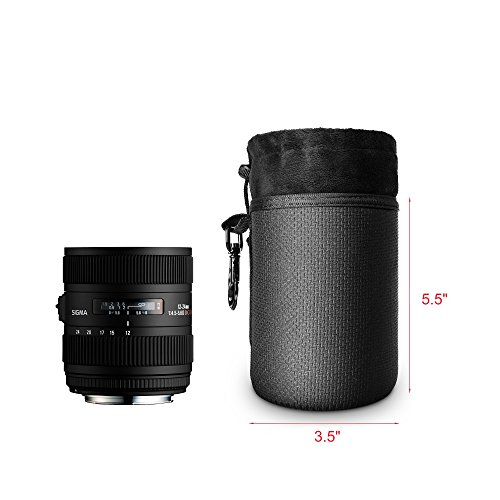 Lightning Power - Splashproof Thick Neoprene Protective DSLR Camera Lens Pouch Bag Case with Metallic Swivel Hook for Canon / Sony / Nikon (Small)