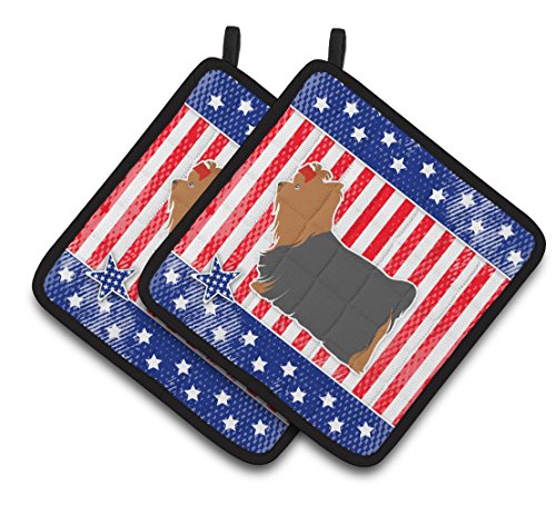 Caroline's Treasures USA Patriotic Yorkshire Terrier Yorkie Pair of Pot Holders BB3334PTHD, 7.5HX7.5W, Multicolor