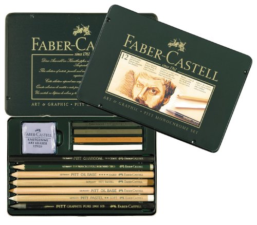 The PITT Monochrome sets have been put together for the "mobil artist" who needs a handy portable set for sketches and studies using charcoal, graphite and artists pencils and crayons.